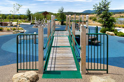 Situated with expansive views of Ford's Pond in western Oregon, this new play area will offer inclusive, and nature play for all ages and abilities and has become a major attraction in the wider region. Ford's pond itself with its small islands and beaver ford provided inspiration for the design of the play pond which also features and island and a play beaver ford, as well as a fishing pier, boat and stream inlet. The playpond stimulates imaginary play while the center of the play area provides exciting movement play. A small lawn has become popular for picknicks and is the weekly gathering area for the local Qi gong class. Because the area faces west, Landcurrent paid a lot of attention to placement of shade trees.​